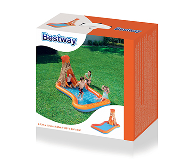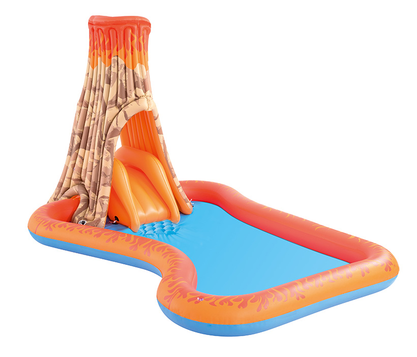 در ضمن برچسب های تعمیراتی که برای استخر بادی همچون مدل فوق در نظر گرفته شده است ، لیبل هایی از جنس پی وی سی دارد که باعث شده است تا در صورت آسیب دیدن بتوانید به بهترین شکل ممکن استخر را تعمیر کرده تا کودکان همچون روز اول از استخر بادی استفاده کنند . از مواردی که باید در خرید استخر بادی توجه داشته باشید ، ابعاد استخر و البته رده سنی محصول می باشد . طول و عرض این استخر بادی به ترتیب 277 سانتی متر و عرض 175 سانتی متر می باشد و می توان گفت که استخر بادی ابعاد مناسب و بزرگی دارد تا کودکان بتوانند به همراه خواهر یا برادر خود و حتی دوستانشان مشغول بازی و سرگرمی شوند . نوع طراحی جالب استخر بادی باعث شده است تا سرسره از میان کوه آتشفشانی عبور کند .