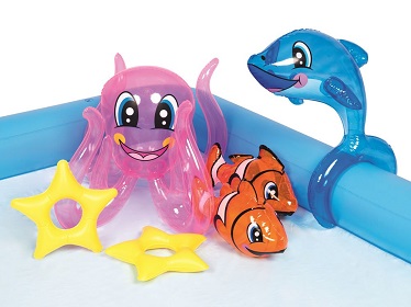 هر محصولی به ویژه استخر های بادی فواره دار دارای یک طراحی و آرگونومی ساخت هستند که همین موضوع نیز باعث تمایز مدل ها می شود ، این محصول یعنی استخر بادی کودک آکواریوم بست وی یکی از متفاوت ترین و خاص ترین استخر های بادی تولید شده در سال های اخیر است که می توانید آن را تهیه کنید . این محصول شامل یک استخر بادی نسبتا بزرگ است که به صورت مستطیلی تولید شده ، این استخر دارای یک سرسره بادی سرخورد می باشد که کودکان می توانند از آن استفاده کنند و به داخل آب استخر سر بخورند . همچنین این محصول شامل یک آبپاش بوده که می توانید با استفاده از یک شلنگ ، آب را به آبپاش که به صورت درختچه طراحی شده است متصل کنید تا با فوران کردن آب جلوه زیبا ترین به استخر ببخشد . اسباب بازی ها و عروسک های قرار گرفته در داخل این پکیج نیز متشکل از دو دلقک ماهی ، یک دلفین عروسکی بزرگ ، دو ستاره دریایی و یا هشت پا با صورت های کارتونی می باشد که کودک می تواند از آن ها نیز استفاده کند .
