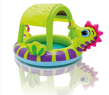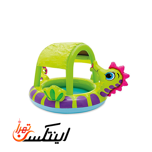 استخر بادی کودک طرح اژدها با سایبان حلالی طرح جدید و محصول تازه تولید شده اینتکس در سال 2014 با کف باد شو و طراحی جالب و کودکانه با چهار محفظه باد و چها ستون بادی ، از این استخر بادی روی چمن ،داخل حیاط ، حمام ، روی بام منزل ، ویلا ، و ... ، این استخر میتواند بازیچه بسیار خوبی برای فرزندانتان باشد و در فصل گرما بهترین سرگرمی برای آنها باشد ، طراحی زیبای آن کوکان را جذب خود خواهد کرد ، نوع جنس بدنه استخر از پی وی سی میباشد و بدلیل نرم بودن بدنه استخر در هنگام باد شدن در صورت برخورد کودک با بدنه هیچ خطری آنها را تهدید نخواهد کرد.