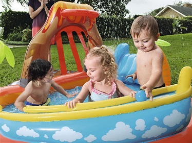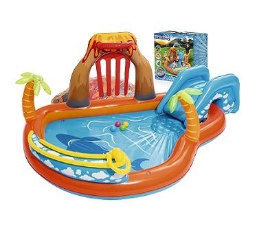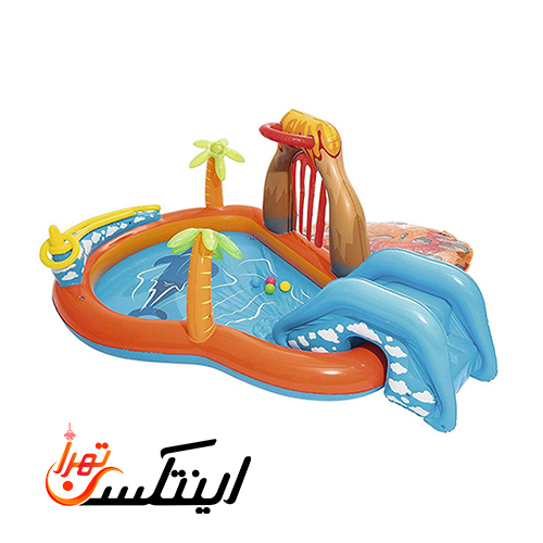 استخر بادی کودک طرح دریاچه بست وی از نمونه استخر های بادی بچگانه بسیار دوست داشتنی و زیبا است که توسط شرکت بست وی عرضه شده و در سراسر دنیا به فروش بالایی دست یافته است . این استخر بادی زمین بازی را برای کودک در قالب یک جزیره با کوه آتشفشانی و یک دریاچه بسیار زیبا در وسط آن به ارمغان آورده است که کودک می تواند حس خوبی را در هنگام بازی داشته باشد . این محصول به گونه ای طراحی شده است که شما می توانید داخل آن را با 208 لیتر آب پر کنید و بستری را برای تفریحات آبی فرزندانتان ایجاد کنید . شما می توانید این حجم از آب را به راحتی از طریق دریچه تخلیه خالی کنید . این محصول از جنس بسیار نرم ، مقاوم و با دوام pvc با ضخامت 0.27 میلی متر ساخته شده است که بهترین مزیت آن مقاومتش در برابر آب است .