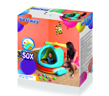 استخر بادی طرح هلیکوپتر محصولی جدید و فوق العاده از شرکت بست وی می باشد که با طراحی زیبا و دوست داشتنی که دارد می تواند یکی از ابزار های بازی و تفریحی اصلی کودکتان باشد. این استخر بادی بدنه رنگارنگی داشته و از ترکیب رنگی زرد، آبی و قرمز در ساخت آن استفاده شده است جنس بدنه این استخر از وینیل بوده و در برابر فشار مقاومت بسیار خوبی دارد. علاوه بر این، همراه این محصول 50 عدد توپ بدون پلیسه قرار داده شده است. با توجه به وزن بسیار کم و حجم بسته بندی کوچک این محصول می توان آن را به سادگی حمل کرده و در شرایط مختلفی نصب کرد.