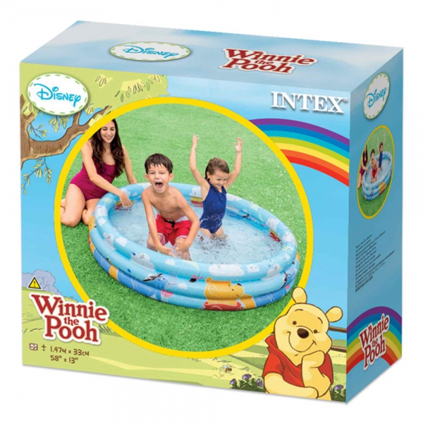 استخر بادی کودک طرح کارتونی پو یکی از جذاب ترین تولیدات شرکت اینتکس بوده که مناسب تفریح کودکان طراحی و به بازار عرضه شده است . این استخر بادی از سه محفظه با دریچه هوای مجزا تشکیل شده است که این امر موجب شده که قادر به تعیین ارتفاع آن باشید . بدنه آن از جنس پی وی سی رنگی در نظر گرفته شده است که دارای طرح هایی زیبا و کارتونی بر روی بدنه بوده که زیبایی محصول را تا حد چشمگیری افزایش داده است . ساختار این استخر بادی کودک به صورت سه طبقه می باشد یعنی از سه حلقه بادی قرار گرفته بر روی هم تشکیل شده است . این نوع طراحی باعث شده تا فشار آب به دیواره ها کمتر شود و استحکام بدنه در برابر وزن آب بیشتر شود .