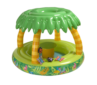 این استخر بادی کودک بسیار شبیه به درخت نخل ساخته شده است که ، نوع طراحی آن باعث شده است تا از درخت بتوان به عنوان سایبان استخر استفاده کرد . دیواره های کناری استخر که بادی می باشد به صورت گرد طراحی شده و از عرض زیادی برخوردار می باشد ، از این رو کودکان می توانند در لبه های بادی استخر بنشینند و پاهای خود را به داخل آب بیاندازند . در مرکز استخر ، کوسنی بادی قرار گرفته است که مودکان می توانند وسایل خود را بر روی آن قرار دهند . این استخر بادی ایمنی بالایی دارد بدین ترتیب کودکان سنین پایین تر می توانند از استخر استفاده کنند . در کنار استخر چندین عروسک بادی از حشرات مانند پروانه و کفشدوزک وجود دارد که کودکان می توانند از آن ها استفاده کنند . جنس استخر بادی اینتکس برای ساخت استخر بادی گرد سایه بان دار از پی وی سی استفاده کرده است ، پی وی سی در واقع وینیل می باشد ، این جنس در برابر رطوبت مقاوم است از این رو اگر از آن به صورت مداوم نیز استفاده کنید ، هیچگونه پوسیدگی در بدنه رخ نخواهد داشت و یا بدنه ضعیف نخواهد شد . یکی از مهم ترین دلایلی که اینتکس از پی وی سی برای ساخت اغلب محصولات بادی خود استفاده می کند ، سازگاری استخر با محیط زیست و سلامت پوست انسان می باشد .