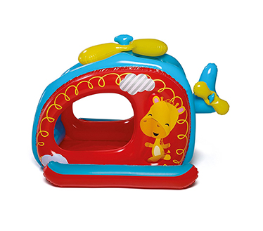 استخر بادی توپ هلی کوپتر کودک از سری استخر های مخصوص توپ کودکان و خردسالان از شرکت بست وی بوده که ساخته شده از جنس PVC با رویه طرح چرم می باشد. این محصول دارای بدنه بادی بوده که در صورت استفاده در فضای باز تا حدودی از برخورد نور آفتاب جلوگیری می کند. همچنین همراه این محصول چند توپ رنگی کوچک برای تفریحات کودکان با این استخر قرار داده شده است. این استخر دارای حجمی کم و وزنی سبک بوده که امکان استفاده و حمل در هر مکان مورد نظری را فراهم می سازد. محصولی با کیفیت بدنه مناسب و ضد آب که توسط کوچکترین پمپ های باد مخصوص محصولات بادی نیز قابل راه اندازی خواهد بود.