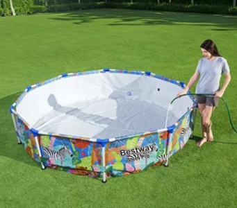 استخر پیش ساخته طرح دار بست وی یکی از استخر های پیش ساخته منحصر به فردی است که به سفارش اروپا تولید و عرضه شده است. قطعا این مسئله بسیار مهم است که یک استخر پیش ساخته هم از نظر نوع طراحی و هم از نظر ساختار بتواند به بهترین شکل ممکن نیاز مشتریان خود را برطرف سازد. با در نظر گرفتن این ویژگی حال باید اشاره کنیم که این محصول توانسته هم از نظر ظاهر و هم از نظر ساختار به بهترین شکل ممکن یک محصول استاندارد برای استفاده خانوادگی به شمار رود. از نظر نوع طراحی شما می توانید مشاهده کنید که بدنه اصلی این محصول به صورت گرد طراحی شده است. این گرد بودن محصول با توجه به ساختار فریمی که دارد باعث می شود تا به صورت خانوادگی و دسته جمعی بتوانید از محیط داخلی این محصول به بهترین و کامل ترین شکل ممکن استفاده کرده و لذت ببرید. هم چنین شما می توانید مشاهده کنید که بدنه اصلی این محصول از نوع برزنتی تولید شده و پایه های این کالا هم از نوع آلومینیومی شکل گرفته اند که این عامل سبب شده تا شما یک محصول استاندارد و با دوام را در اختیار داشته باشید. طرح موجود بر روی بدنه اصلی این استخر پیش ساخته هم یکی دیگر از ویژگی های این محصول است که قطعا در میان خانواده ها و خصوصا کودکان محبوبیت بالایی را ایجاد کرده است.