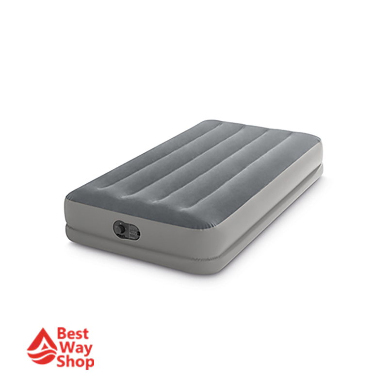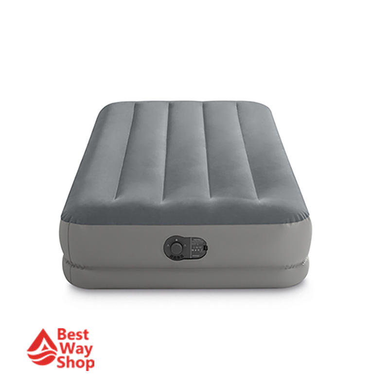 تخت بادی تک نفره Intex 64112 با رنگ طوسی و کرم ملایم طراحی شده که بهراحتی با دکوراسیون هر فضایی هماهنگ میشود. سطح مواج آن علاوه بر ظاهر زیبا، با بدن کاربر هماهنگ شده و خوابی آرام و راحت را فراهم میکند. ارتفاع ۳۰ سانتیمتری تخت باعث میشود هنگام نشستن یا برخاستن، فشار کمتری به زانو و کمر وارد شود. این محصول علاوه بر عملکرد بینظیر، از نظر ظاهری نیز حس مدرن و لوکسی به فضا میدهد.