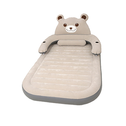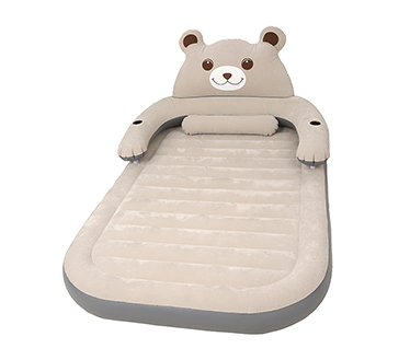 قطعا می توان این تشک را دسته خلاقانه ترین تشک های بادی موجود در بازار جای داد. در همین خصوص باید عنوان کرد که این کالا ظاهری مستطیلی شکل دارد. لبه های پایینی و بالایی این محصول همگی به صورت گرد ساخته شده اند تا این تخت ظاهر جذاب تری به خود بگیرد. هم چنین بخش های کناری این محصول به صورت ساده و رویه اصلی ان نیز به صورت خطوط شیاردار و موازی ساخته شده است که کیفیت بالایی داشته و محلی نرم و ارام را برای کودک شما فراهم کرده است. در کنار این موارد باید به بخش بالایی این محصول هم اشاره کنیم. در این قسمت تصویر یک عدد خرس به چشم می خورد که فوق العاده زیبا و طبیعی بوده و کودک شما می تواند در حین نشستن بر روی تخت به ان تکیه دهد. هم چین در دو سمت این محصول و بر روی دست های خرس دو عدد جایگاه بطری هم قرار دارد که می توانید علاوه بر قرار دادن بطری اب ، اشیا ریز خود را هم در داخل ان قرار دهید تا گم نشود. هم چنین یک عدد بالش بادی سر خود هم در قسمت بالایی این محصول تعبیه شده است که شما و کودک را از این حیث بی نیاز کرده است.