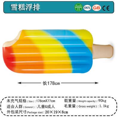 تشک روی آب طرح بستنی از سری محصولات جدید کمپانی اینتکس می باشد که از طراحی بسیار زیبا مدرنی برخوردار است. ابدنه این محصول از لایه های فوق العاده ضخیم وینیل ساخته شده است که در برابر فشار و ضربه مقاومت خوبی دارد با این وجود لازم است از فشار آوردن به یک نقطه از بدنه محصول خودداری کنید. این محصول توانایی تحمل وزن تا 80 کیلوگرم را داشته پو رنگ بندی بدنه آن قرمز - نارنجی - زرد و آبی می باشد. طول تشک برابر با 178 و عرض تشک نیز برابر با 77 سانتی متر می باشد و طبق اعلام اینتکس برای استفاده افراد با سنین بالای 14 سال مناسب است.