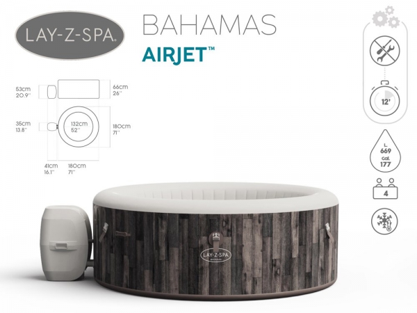 قطر جکوزی بادی خانوادگی طرح چوب بست وی 180 سانتی متر است و ارتفاعی که جکوزی بادی دارد 66 سانتی متر است . این اندازه دقیقا برای جکوزی های بادی استفاده می شود که چهار نفر بتوانند از جکوزی بادی استفاده کنند . دلیل اینکه این جکوزی بادی برای خانواده هاست ، همان بزرگ بودن جکوزی بادی است . این جکوزی بادی را می توانید در هر جایی راه اندازی کنید . بدنه جکوزی بادی خانوادگی طرح چوب بست وی از پی وی سی برزنتی ساخته شده است و کیفیت آن بسیار بالاست .