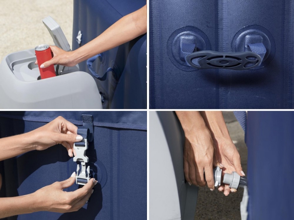 جکوزی بادی خانوادگی مربعی بست وی از جکوزی های بسیار محبوب و پر فروش برند بست وی می باشد که در سال 2022 ساخته شده و یکی از بزرگترین جکوزی های بادی این برند است که طراحی مربعی دارد . طول و عرض جکوزی بادی خانوادگی مربعی بست وی 180 سانتی متر با ارتفاع 71 سانتی متر می باشد که در داخل خود 840 لیتر آب جای می گیرد . برای گرم شدن این آب ، آبگرمکن و سیستم گرمایشی بسیار خوب تایمر دار قرار داده شده است که می توانید با استفاده از پنل کنترل دیجیتال پیشرفته ای که برای جکوزی بادی در نظر گرفته است ، دمای آب را تنظیم کنید . این جکوزی بادی با توجه به بادی بودنش قابلیت حمل داشته و وزن آن 43 کیلوگرم می باشد . با توجه به قابلیت جدا سازی سیستم های گرمایشی سایر تجهیزات شما می توانید جکوزی را به راحتی جابجا کنید . جکوزی بادی خانوادگی مربعی بست وی می تواند فضایی بزرگ را برای استفاده چهار نفر بزرگسال فراهم کند . این جکوزی بادی حتی دارای سیستم ماساژ از طریق دریچه های موجود در بدنه می باشد که می توانید از آن ها بهره مند شوید . همچنین این جکوزی دارای درپوش بزنتی با قفل ایمنی است که مطابق با ابعاد دهانه جکوزی بادی بوده و می تواند از افتادن اشیاء به داخل جکوزی بادی و یا ورود کودکان به داخل جکوزی جلوگیری کند . برای کسب اطلاع از قیمت جکوزی بادی می توانید با فروشگاه مرکزی اینتکس تماس بگیرید .